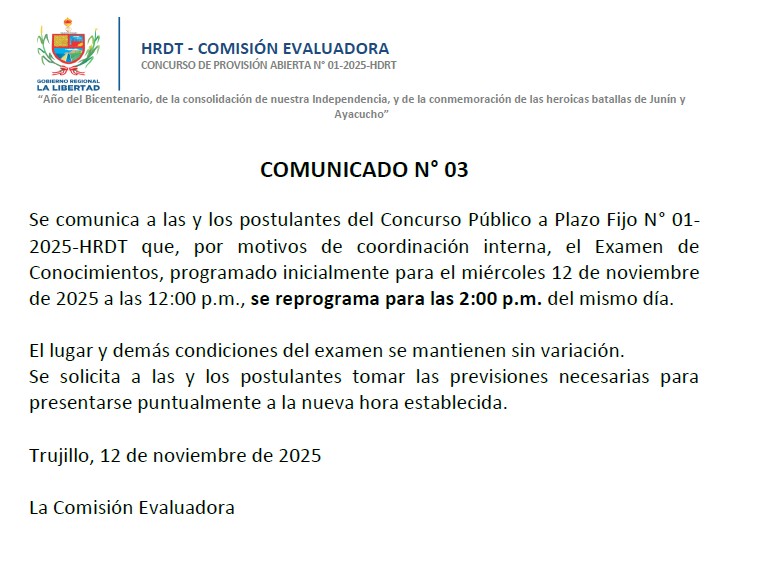 Comunicado Nº 03 Plazo Fijo N° 01-2025-HRDT