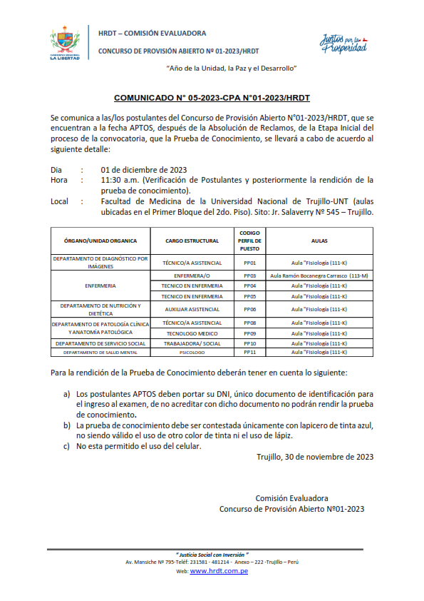 01 UN PROFESIONAL PARA EJECUTAR SERVICIOS DE CONTROL SIMULTANEO EN EL ÓRGANO DE CONTROL INSTITUCIONAL DEL HOSPITAL REGIONAL DOCENTE DE TRUJILLO